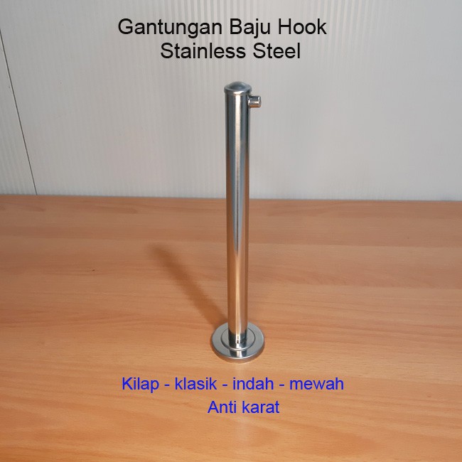 Gantungan Baju Hook, Kapstok Stainless Steel Bahan Full Pipa Tebal Stainless Steel, OD pipa 7/8", Tebal 0.8mm Anti Karat, Anti Gores, Kilap, Bersih & Mewah Bahan Stainless Steel lebih kuat dari bahan besi Produksi Pabrik Sendiri, Kualitas Terjamin