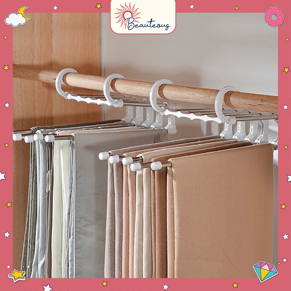 Magic hanger multifungsin 5 in 1, terdiri dari 5 gantungan, bisa digunakan untuk jilbab, handuk dan celana agar tersusun rapi dan hemat tempat, karena hanger bisa dijadikan horizontal tersusun.