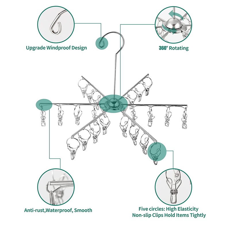 Detail Gantungan Baju Teleskopik Lipat Rak Pengering Pakaian Stainless Steel Laundry Drying Rack Gantung Pakaian Dalam Handuk Klip Fungsi: Aksesoris: Aksesoris