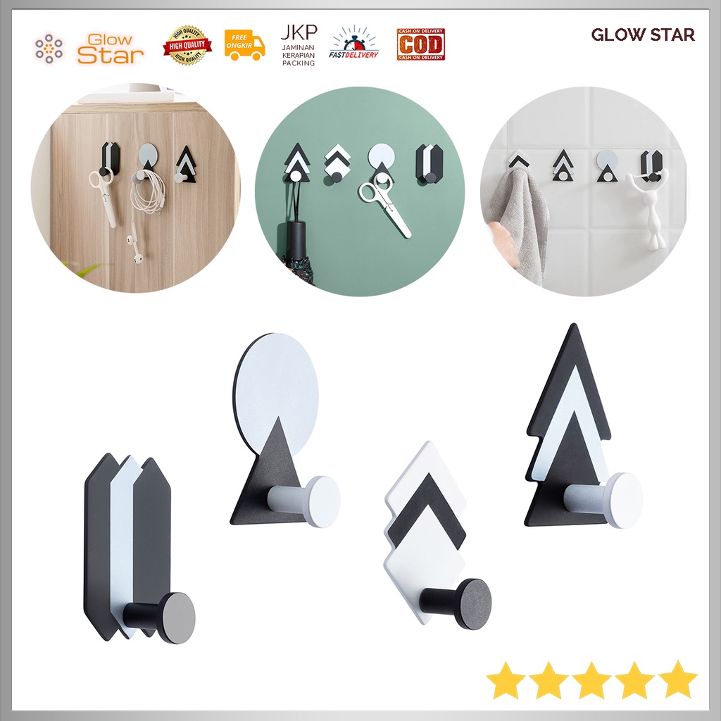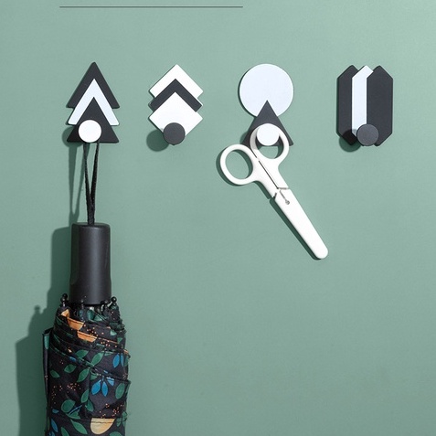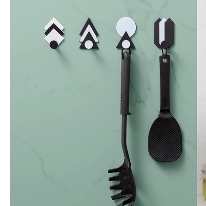 Perlengkapan Rumah > Organizer Rumah > Pengait > Gantungan Cantolan besi hook hitam putih styllish elegant Black White Kotak Segitiga Hiasan dinding Kotak Trapesium Bundar Pengait Serbaguna