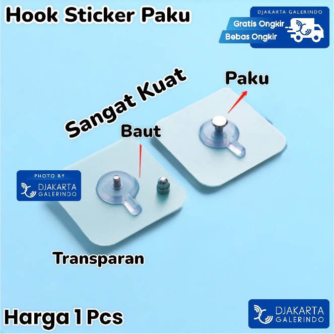 Hook Paku Spesifikasi = - Bahan : Stainless Steel, PVC Plastic & Adhesive Sheet - Ukuran Hook Paku : 8 x 5 x 1.6 Cm - Panjang Paku : 12 Mm - Maksimal Berat : 5 Kg