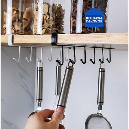 - Gantungan dengan cara selip di lemari maupun rak dengan hook gantungan menghadap kebawah. - Praktis dan tidak makan tempat, karena biasanya ruang pada bawah lemari biasanya tidak terpakai, dengan gantungan ini maka semua ruang pada lemari dapat dimanfaatkan. - Dapat menampung beban hingga 10kg ( Jika bagian ujung dibaut ). - Bahan Besi. - Setiap batang memiliki 6 Hook.