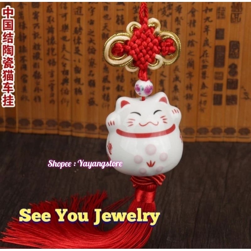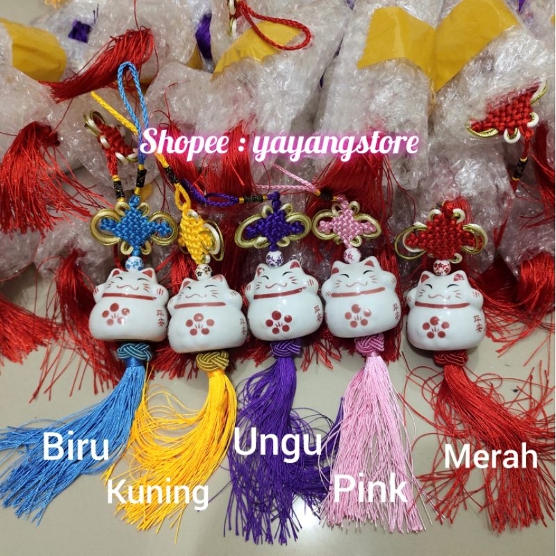Gantungan Kucing Keramik / Kucing Hoki / Lucky Cat aksesoris pembawa keberuntungan
