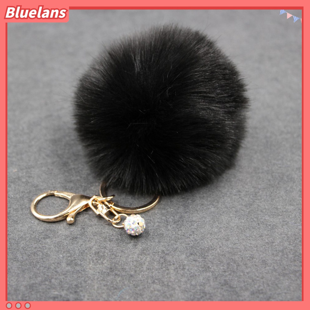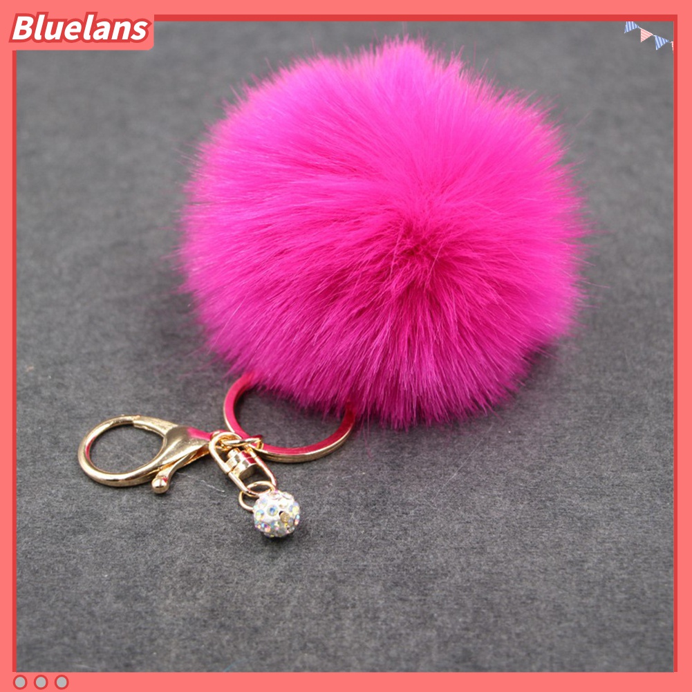 Detail Gantungan Kunci Bentuk Bola Pompom Bulu Kelinci Imitasi Warna-Warni Untuk Wanita