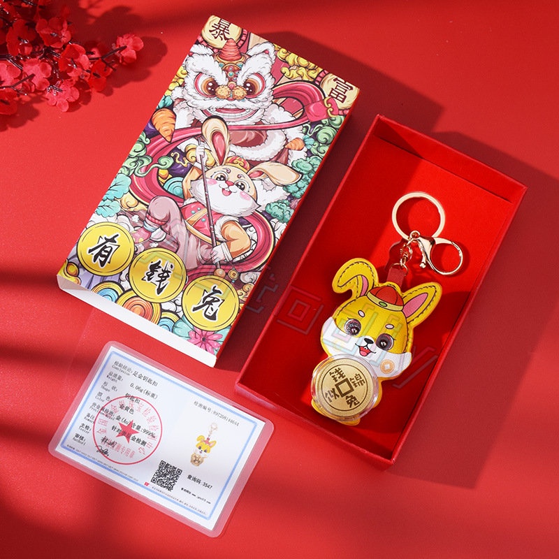 Detail Gantungan Kunci Bentuk Kelinci Keberuntungan Tahun Baru Cina 2023 Warna Gold