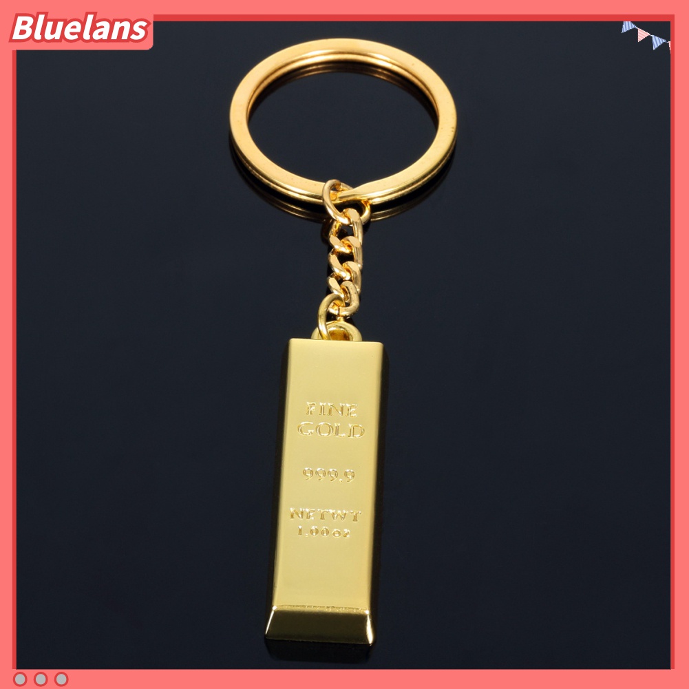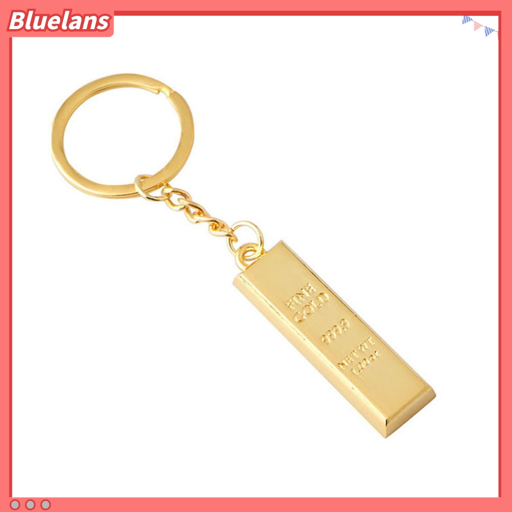 Detail Gantungan Kunci Mobil / Tas Bentuk Batu Bata Warna Emas Imitasi
