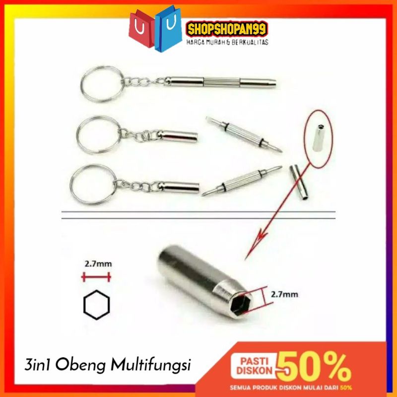Pernahkah Anda membutuhkan obeng disaat mendesak untuk membongkar peralatan yang sedang Anda gunakan saat beraktifitas? Peralatan seperti mouse, jam tangan, mp3 player cenderung menggunakan sekrup ukuran kecil dan membutuhkan obeng untuk membukanya. Kini Anda dapat membawa obeng kecil kemana saja dengan bentuk gantungan kunci yang mini, dan menggunakannya saat diperlukan.
