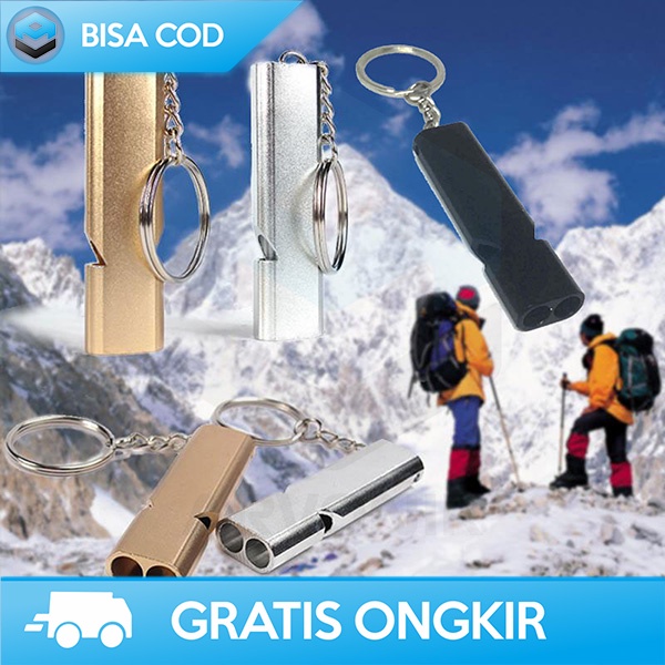 Peluit merupakan salah satu peralatan yang wajib Anda bawa saat melakukan kegiatan outdoor seperti hiking, berpetualang, berkemah dan lainnya. Dengan meniup peluit, Anda bisa memberikan sinyal keberadaan Anda saat tersesat atau terpisah dengan rombongan. Peluit ini bisa Anda pilih untuk kegiatan outdoor Anda. Selain mampu menghasilkan suara yang nyaring dan keras, peluit ini didesain dengan model gantungan kunci sehingga Anda dapat menggantungnya dengan mudah di berbagai tempat