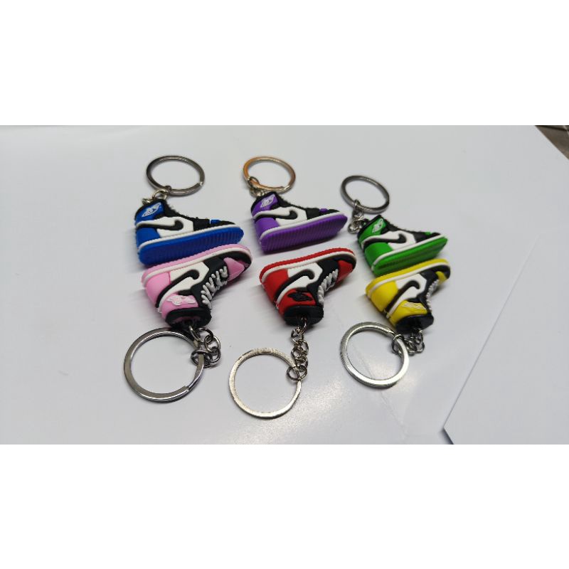 gantungan kunci model sepatu merk nike air jordan 3D 3 dimensi ukuran ada di photo dengan perbandingan di taro di tangan.