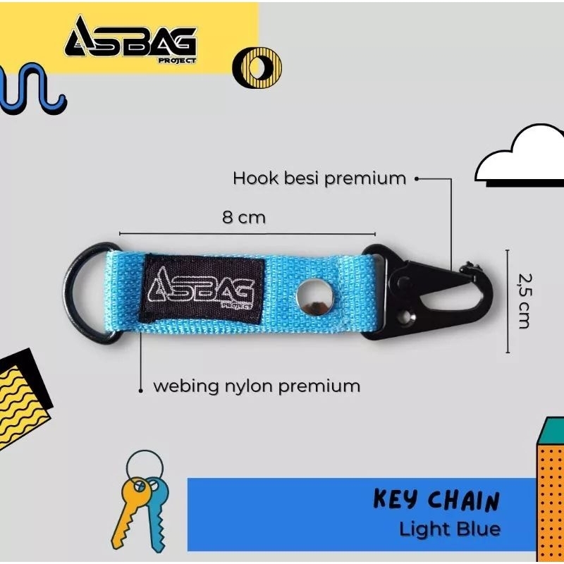 .Material webbing fabric premium .Material hook/ pengait ring pengait kunci .Demensi Tali webbing= P 8cm // L 2,5 cm .Avalible : 9 warna .Merah,Biru,Hitam,Army,supreme,Abu abu,Tosca,Hijau
