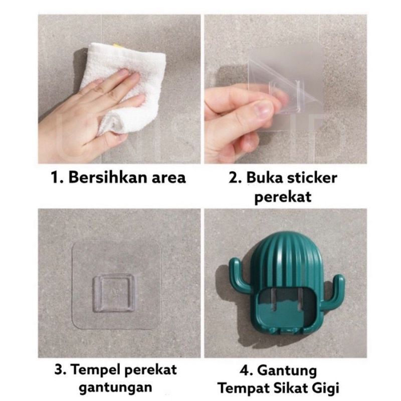 Detail GANTUNGAN TEMPEL DINDING TEMPAT SIKAT GIGI MOTIF KAKTUS / RAK SIKAT GIGI