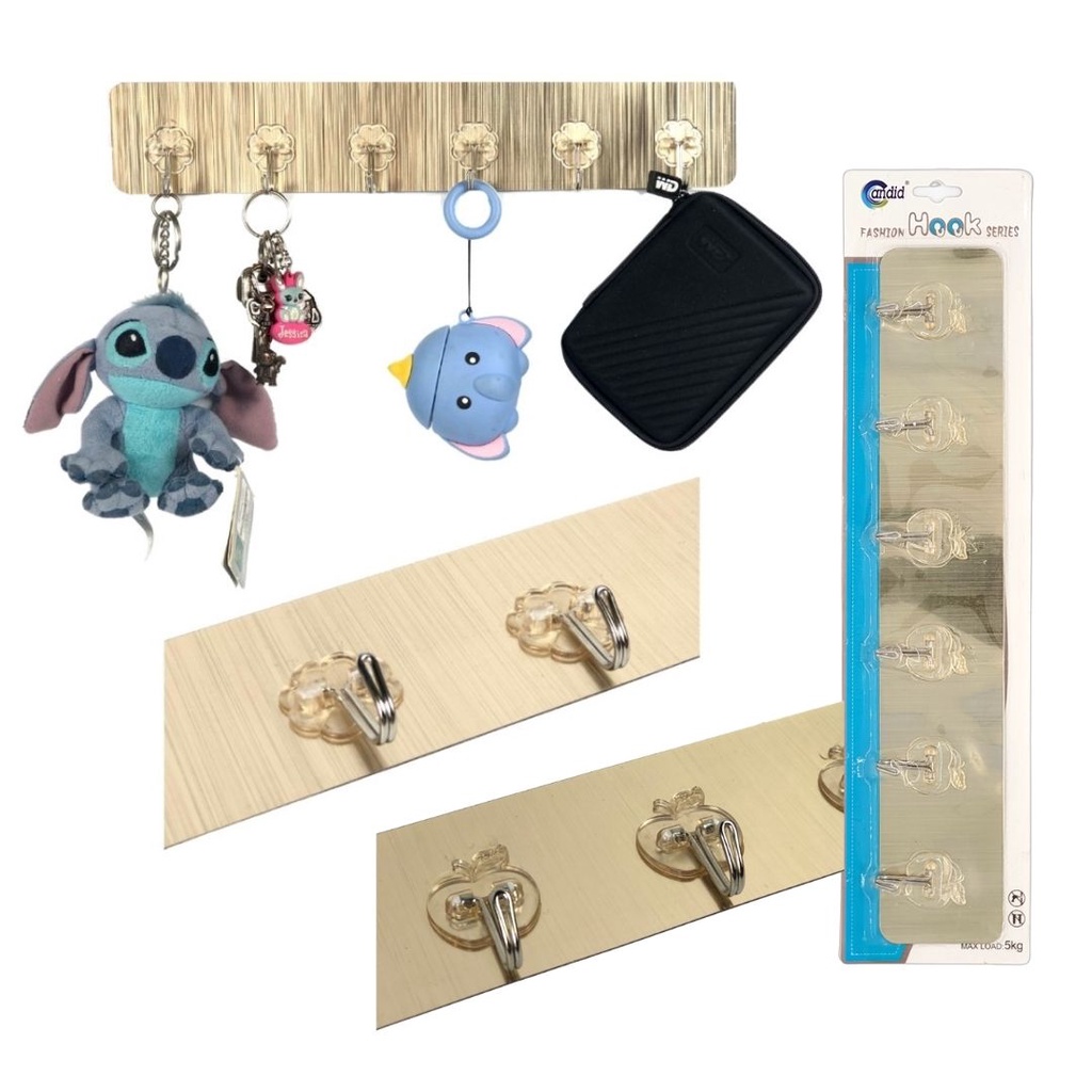 Detail Gantungan Tempel 6 Kait / Kapstok Tempel / Hook Tempel 6Kait Serbaguna Kapasitas Up to 15Kg