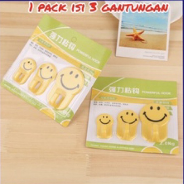 GANTUNGAN BENTUK SMILEY TIDAK PERLU MEMAKU ATAU MERUSAK TEMBOK DILENGKAPI DENGAN LEM STICKER YANG KUAT TERBUAT DARI PLASTIK DAPAT DIGUNAKAN UNTUK MENGGANTUK KUNCI ATAU LAIN-LAIN