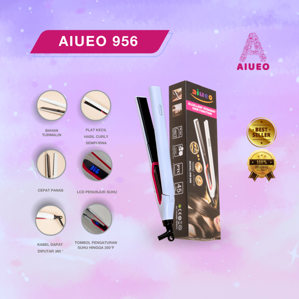 Video perkenalan produk [GARANSI 18 BLN] • Catokan Curly AIUEO 956 2in1 Hair Straightener - Catok Meluruskan dan Keriting Rambut Plat Keramik Plat Kecil Warna Putih. Sumber: Shopee.