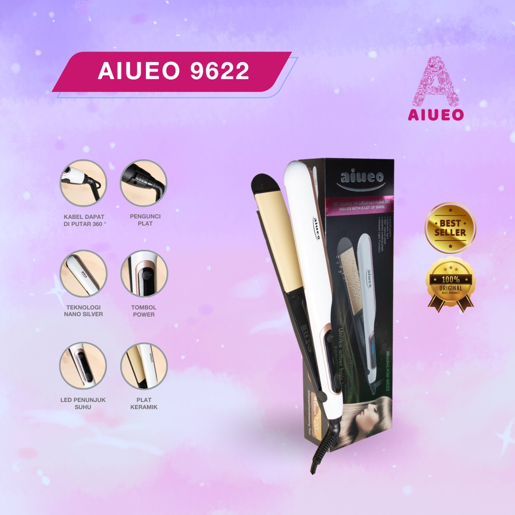 CATOKAN AIUEO 9622 - GARANSI 18 BULAN Memperkenalkan teknologi Pelurus Rambut kami, yang akan membantu Anda untuk mengunci kelembaban dan minyak alami di kepala Anda, menjaga rambut lurus lebih alami dan tahan lama.