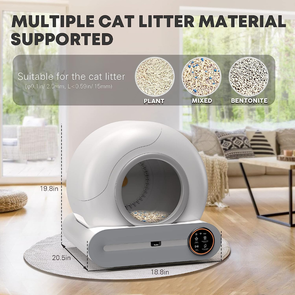 Feature:Sustainable, Sustainable, App control Application:Cats, cats Item Type:Cat Litter Box Material:other, Plastic Product name:Cat Litter Box Size:48*51.6*50.5cm Diameter of the door:24.5cm Noise:lower than 35db Litter Capacity:9L Inner Space:65L APP: Tuya