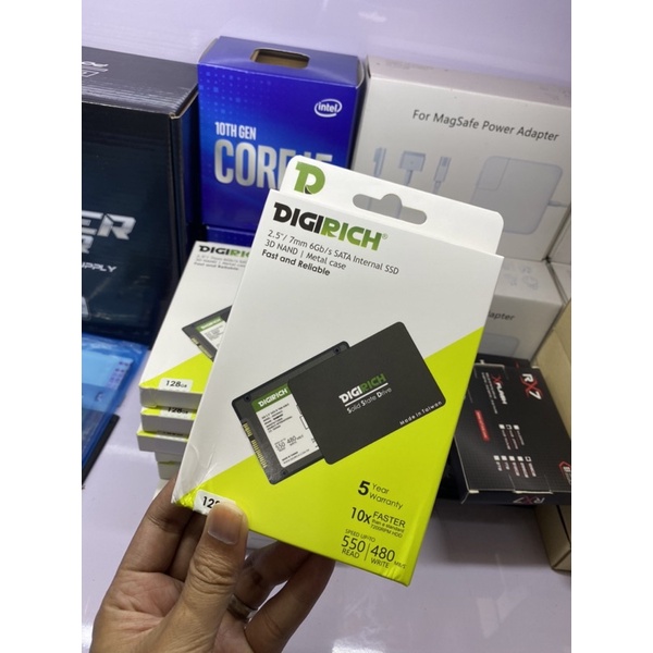 Spesifikasi Produk: Dimensi : 100 x 70 x 6 mm Kapasitas : 128GB Merek : Digirich Model : DGSSDM22 Kualitas : Original 100% Kecepatan : Read up to 550 MB/s, Write up to 480 MB/s (10x Faster) Interface : SATA 1, SATA 2, SATA 3 - 6 GB/s Form Factor : 2.5 inch / 77mm Garansi : 5 Tahun Resmi Tipe : Internal Storage (Bisa untuk eksternal) Operasi Sistem : All Operating Systems Case : Metal