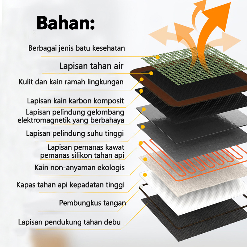 - 1 Buah Batu Giok Germanium Kasur Kesehatan 2-in-1 yang Dipanaskan,Panjang 150cm: Lebar 50cm - 1 pengontrol Kontrol suhu 10 ° C-70 ° C - 1 buah Jade Wellness Cushion - 1 buah sandal pijat kaki giok - 1 selimut tipis