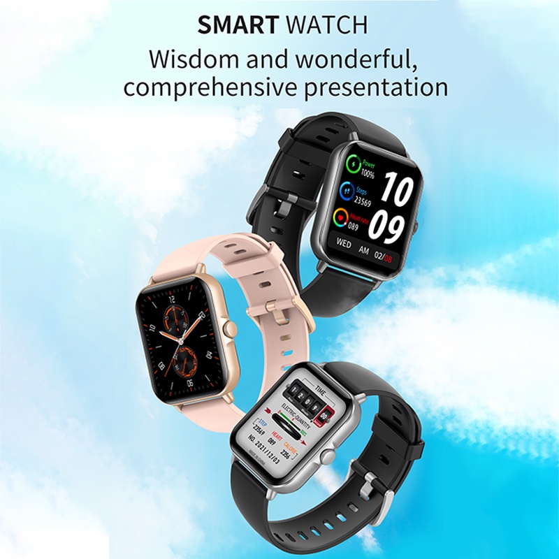 Features: 1.Keep an eye on your health: Heart rate, blood pressure, blood oxygen, sleep tracker. 2. A good helper for workout: Steps, distance, calories burned, sports modes. 3. A good helper for daily life: Bluetooth phone calls, sync notifications, music control, camera remote, alarm, sedentary reminder, stopwatch, find my phone, voice assistant, weather, etc.