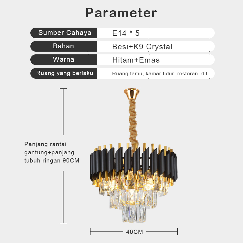 Detail ⭐Garansi⭐Lampu Gantung Kristal Chandelier 40cm Hitam/Gold Gaya Nordik Minimalis Ruang Tamu Ruang Makan Kamar Tidur Modern Lampu Hias Gantung