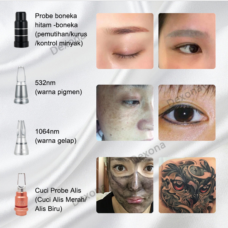 532 probe: terutama mengoperasikan pigmen merah dan warna, mencuci tato warna, mencuci alis merah, menghilangkan bintik-bintik, menghilangkan tahi lalat, menghilangkan tanda lahir