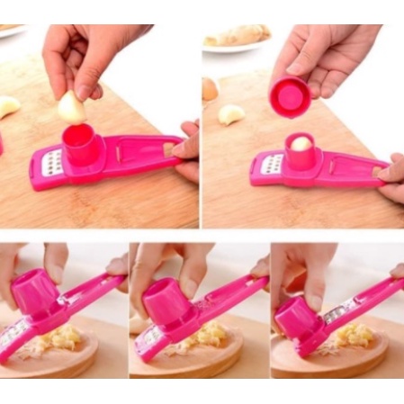Alat press untuk menghaluskan dan mencacah bawang putih, jahe, bumbu dapur lainnya. Pemakaian sangat mudah cukup taruh bawang / jahe didalam alat press lalu tekan dan parut. Dengan alat ini tidak ada lagi tangan luka terkena pisau atau berbau bawang