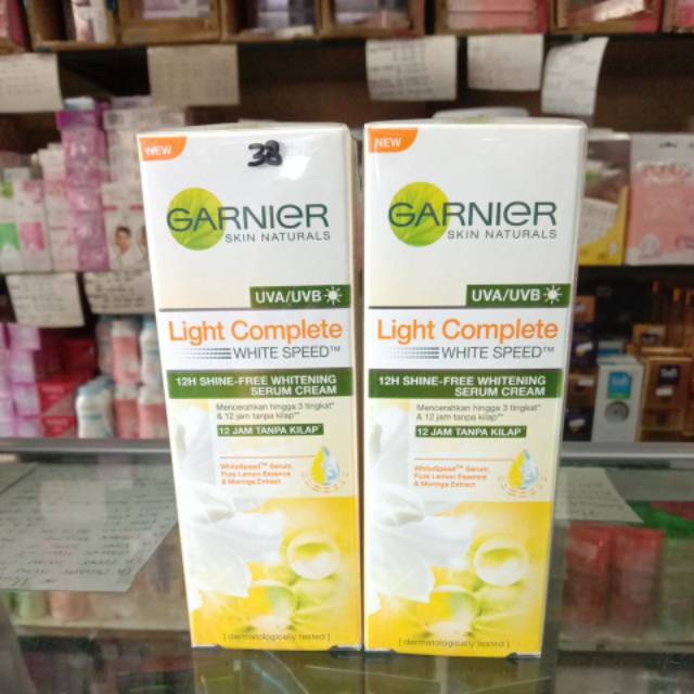 Krim siang dari Garnier yang mencerahkan wajah hingga 3 tingkat dan bantu wajah bebas kilap seharian Inovasi baru dari Light Complete White Speed Multi-Action Whitening Serum Cream. Kini dengan WhiteSpeed Serum, formulanya yang ringan bantu mencerahkan kulit wajah hingga 3 tingkat. Diperkaya dengan Sari Lemon, Ekstrak Moringa, Salicylid Acid Derivative dan UVA/UVB Filters, formulanya bantu mencerahkan dan melindungi kulit dari polusi debu, menyamarkan noda hitam dan bekas jerawat, bantu wajah bebas kilap 12 jam. Dapatkan kulit wajah terlindungi dari sinar matahari dan bebas kilap seharian!