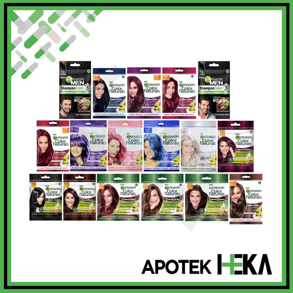 Warna : - 1 Hitam Alami 20 ml + 20 g - 3 Cokelat Kehitaman 20 ml + 20 g - 3.1 Midnight Blue 30 ml + 30 g - 3.16 Burgundy Alami 20 ml + 20 g - 5.32 Coklat Caramel 20 ml + 20 g - 6.26 Plum Red 30 ml + 30 g - 6.62 Cranberry Red 30 ml + 30 g - 7.3 Golden Brown 30 ml + 30 g - 7.65 Rasberry Red 30 ml + 30 g - 4 Coklat 20 ml + 20 g - 6.64 Merah Berry 20 ml + 20 g - Garnier Men Shampoo Color 1.0 Hitam Alami - Garnier Men Shampoo Color 3.0 Coklat Kehitaman - Ash Blonde - True Blue - Deep Lavender - Briliant Pink
