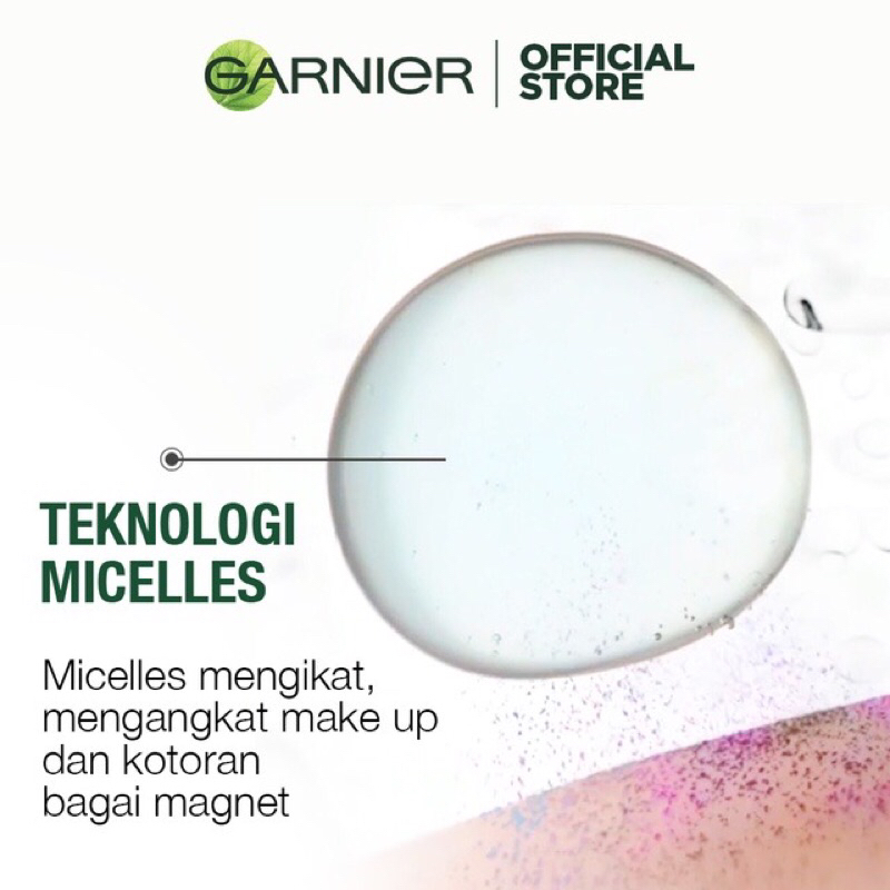 Garnier Micellar Cleansing Water, diperkaya dengan Micelles, dapat mengikat dan mengangkat debu, kotoran, juga make-up dari wajah, mata, dan bibir. Tektsturnya ringan seperti air, sehingga dapat menghilangkan kotoran dan make-up dari wajah secara lembut tanpa perlu dibilas.Formulanya tidak lengket di wajah, tidak berminyak, dan tanpa parfum: cocok untuk semua jenis kulit termasuk kulit sensitif.
