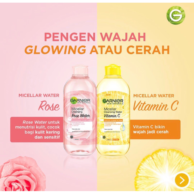 Detail Garnier Micellar Cleansing Water Pink || Blue || Bipase Oil || Vit C || Rose Water
