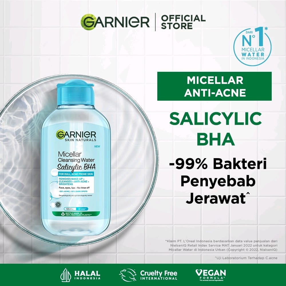 Untuk pertama kalinya, Garnier menggabungkan Teknologi Micelles dengan Salicylic BHA untuk melawan jerawat serta Vitamin C yang mencerahkan. Micelles mengangkat kotoran, debu, dan makeup seperti magnet, sementara Salicylic BHA mengangkat sel kulit mati serta melawan jerawat, serta Vitamin C mencerahkan kusam dan menyamarkan noda hitam. Cocok untuk kulit kusam, berminyak, dan rentan berjerawat. Tanpa parfum, hypoallergenic.