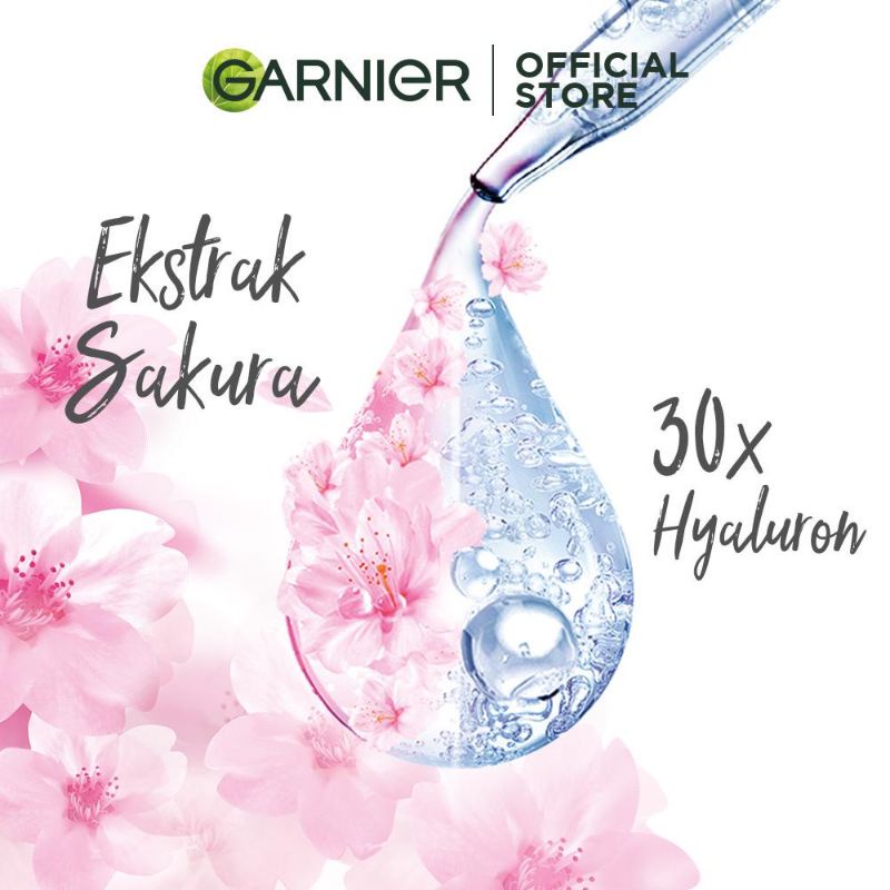 Garnier Sakura Glow Hyaluron 30x Booster Serum Skin Care Untuk Kulit Glowing Dalam 7 Hari] (Sakura White) • Dapatkan newborn glowing skin* dalam 7 hari • Serum dengan kandungan formula pelembap tertinggi dari 30X Hyaluron • Diperkaya dengan Ekstrak Sakura Jepang, dipetik dengan tangan dan diproses secara berkelanjutan, dikenal mampu membuat kulit tampak lebih cerah, lembut dan halus • Tidak lengket dan cepat meresap, bekerja ke dalam lapisan kulit • Dari penggunaan pertama, kulit terasa halus, tampak cerah dan bercahaya • Cocok untuk semua jenis kulit, diuji secara dermatologis • Sebaiknya digunakan di pagi dan malam hari sebelum krim pelembap.
