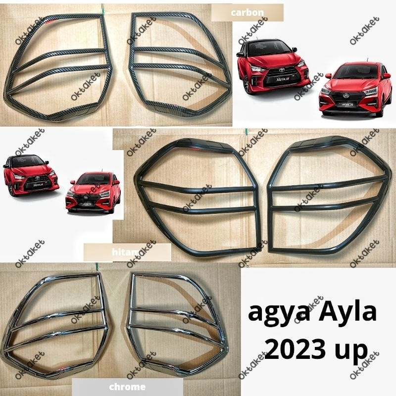 Detail garnish lampu belakang Agya Ayla 2023 2024 2025 Hitam Chrome Carbon gr sport