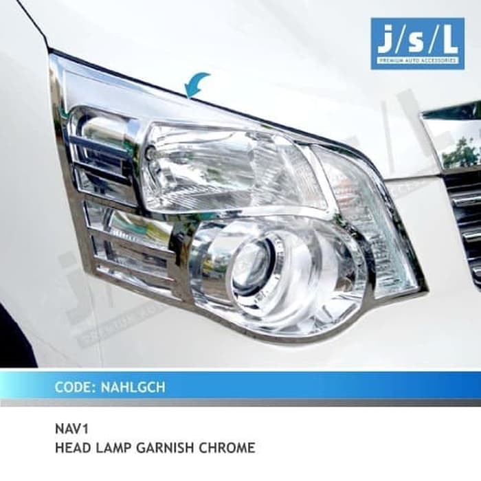Garnish Lampu Depan Toyota Nav1 Merek: JSL Bahan: plastik ABS Warna: chrome Sudah termasuk perekat 3M Pemasangan sangat mudah tinggal lepas perekat Double Tape nya dan langsung tempel pada Body Mobil anda.