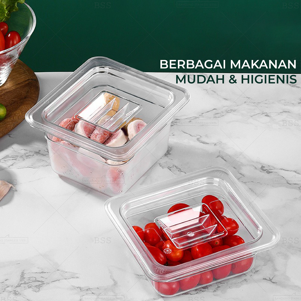 Perlengkapan Rumah > Peralatan Dapur > Tempat Penyimpanan Makanan > Gastronom Akrilik Food Pan 1/9/6 Kedalaman 6.5cm Wadah Penyimpanan Sayur Buah Daging Makanan Tempat Saji Prasmanan Multifungsi