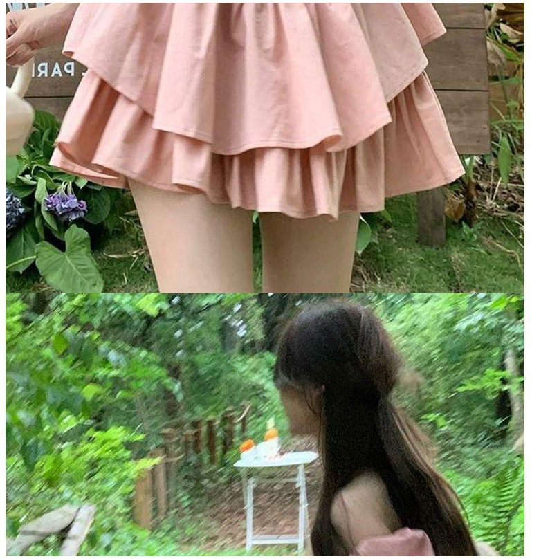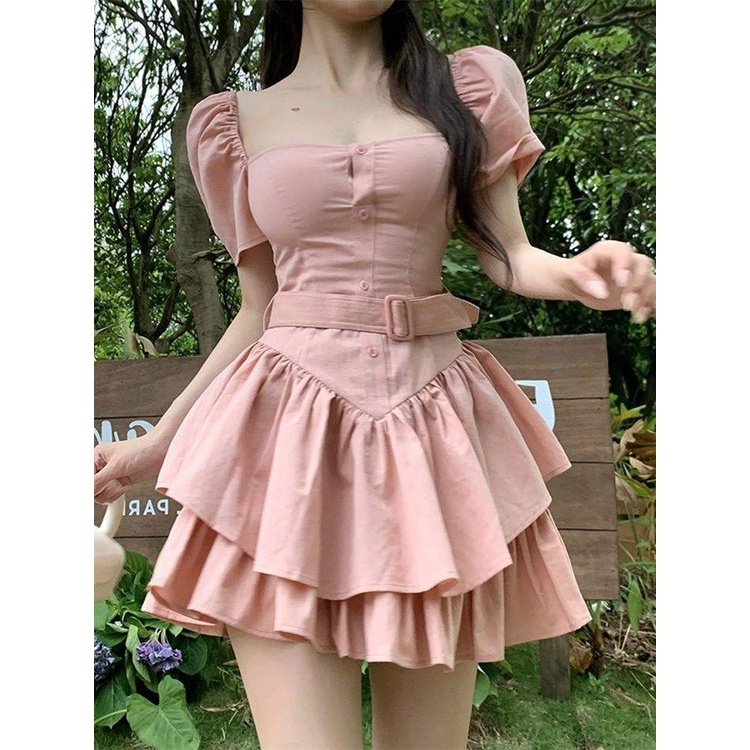 Fashion Muslim > Dress Muslim > Dress Muslim Lainnya > Gaun Balet Manis Murni Gaya Feminin Wanita, Gaun Kue Kecil Kerah Persegi Lengan Puff Ketat Pinggan00