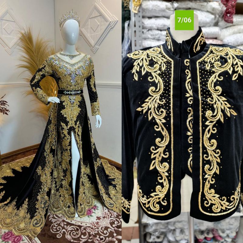 GAUN TERBUAT DARI BELUDRU KOMBINASI PAYET DAN MUTIARA BATU" MODEL BEREKOR PANJANG BELAKANG UKURAN ALL SIZE FIT TO L
