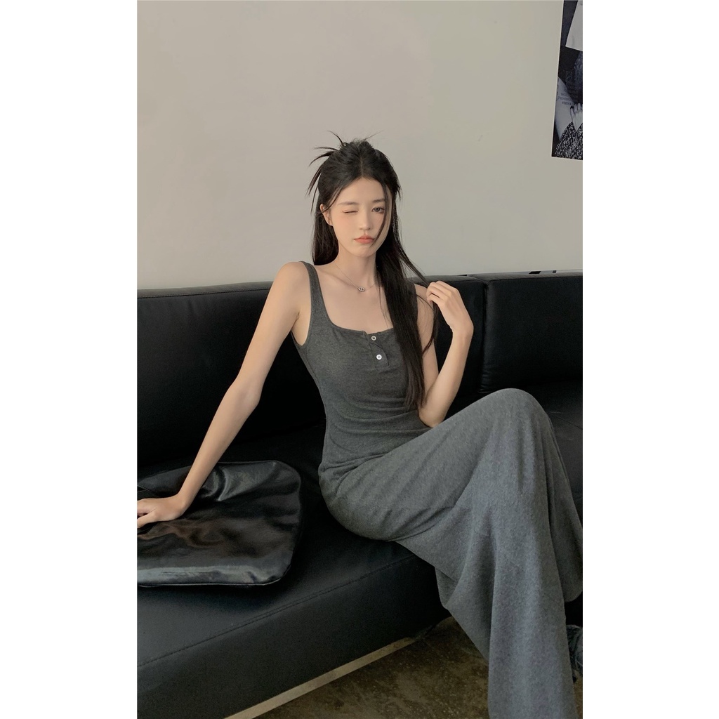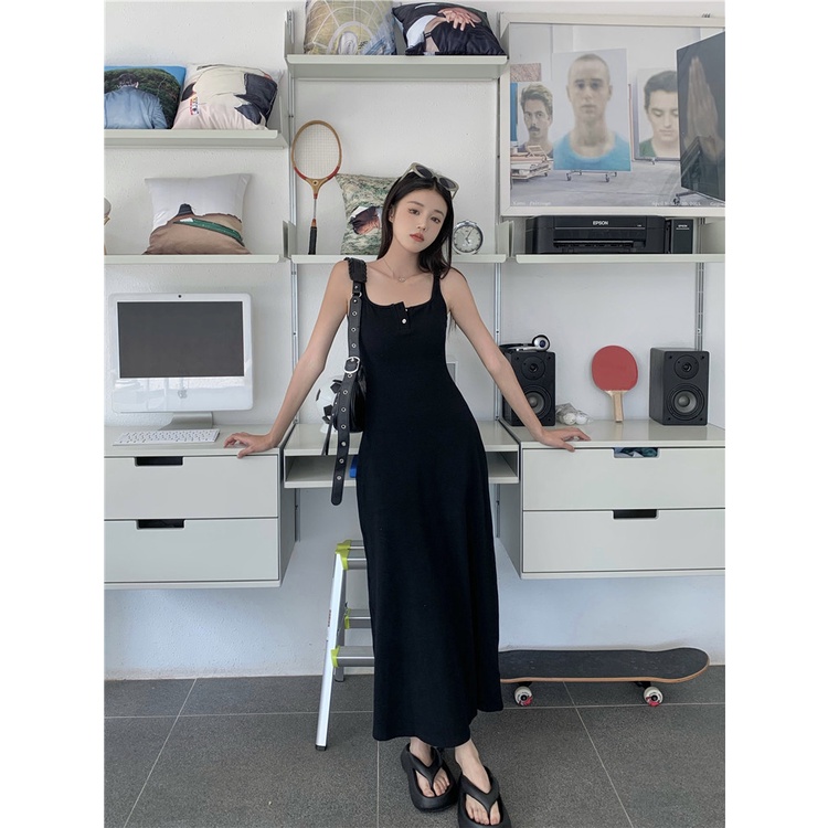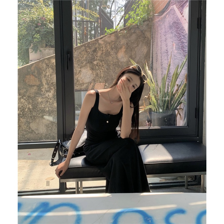 Detail ℗♤✤Gaun Musim Panas Pantai Gadis Panas Gaya Tanpa Lengan Suspender Gaun Wanita Musim Panas Pinggang Pelangsing All-Match Panjang rok A-line