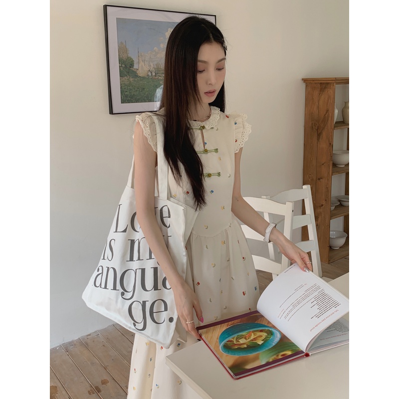 Detail ∏gaun musim panas pantai gaya Perancis angin lembut terbang lengan gaun bunga wanita musim panas gesper elegan rok pinggang panjang rok gaya Cina baru