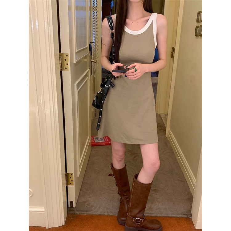 Detail △gaun musim panas pantai murni keinginan angin warna kontras rompi gaun wanita musim panas manis gadis pinggang slim tas hip rok rok pendek