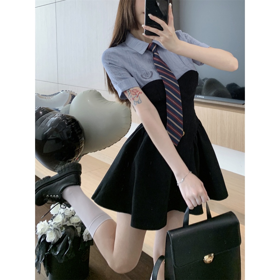 Pakaian Wanita > Denim > Dress Denim > ☾✙✢gaun musim panas pantai selempang gaun hitam kecil wanita gaun musim panas temperamen pinggang pelangsing rok A-line rok pendek kecil