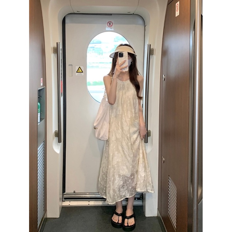 ☢♤gaun musim panas pantai rasa desain halter leher suspender rok gaya liburan gaun wanita musim panas ramping dan lembut angin A-line rok panjang industri berat rok