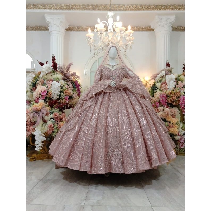 DI DESAINS, DAN DI MODIS MENGIKUT KELAS MODERN MASA KINI GAUN MEKAR 3IN. 1 TERBARU SATU GAUN BISA 2 -3MODEL BAHAN GAUN SEQUIN SPANGLE CRINOLIN PREMIUN