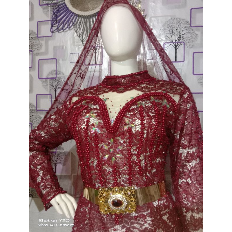 Detail Gaun pengantin berekor