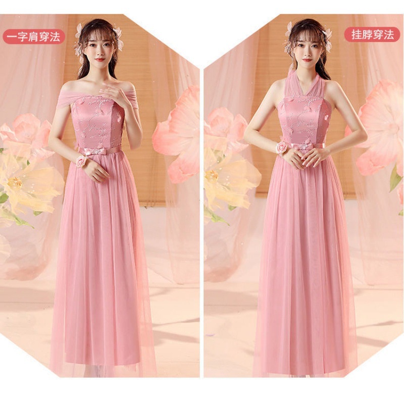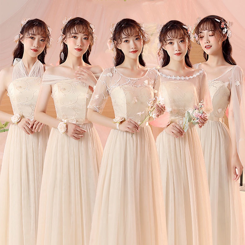 Pakaian Wanita > Wedding Dress > Gaun pengiring pengantin mahasiswi bagian panjang 2023 baru pacar kelompok saudara perempuan rok biasanya bisa memakai