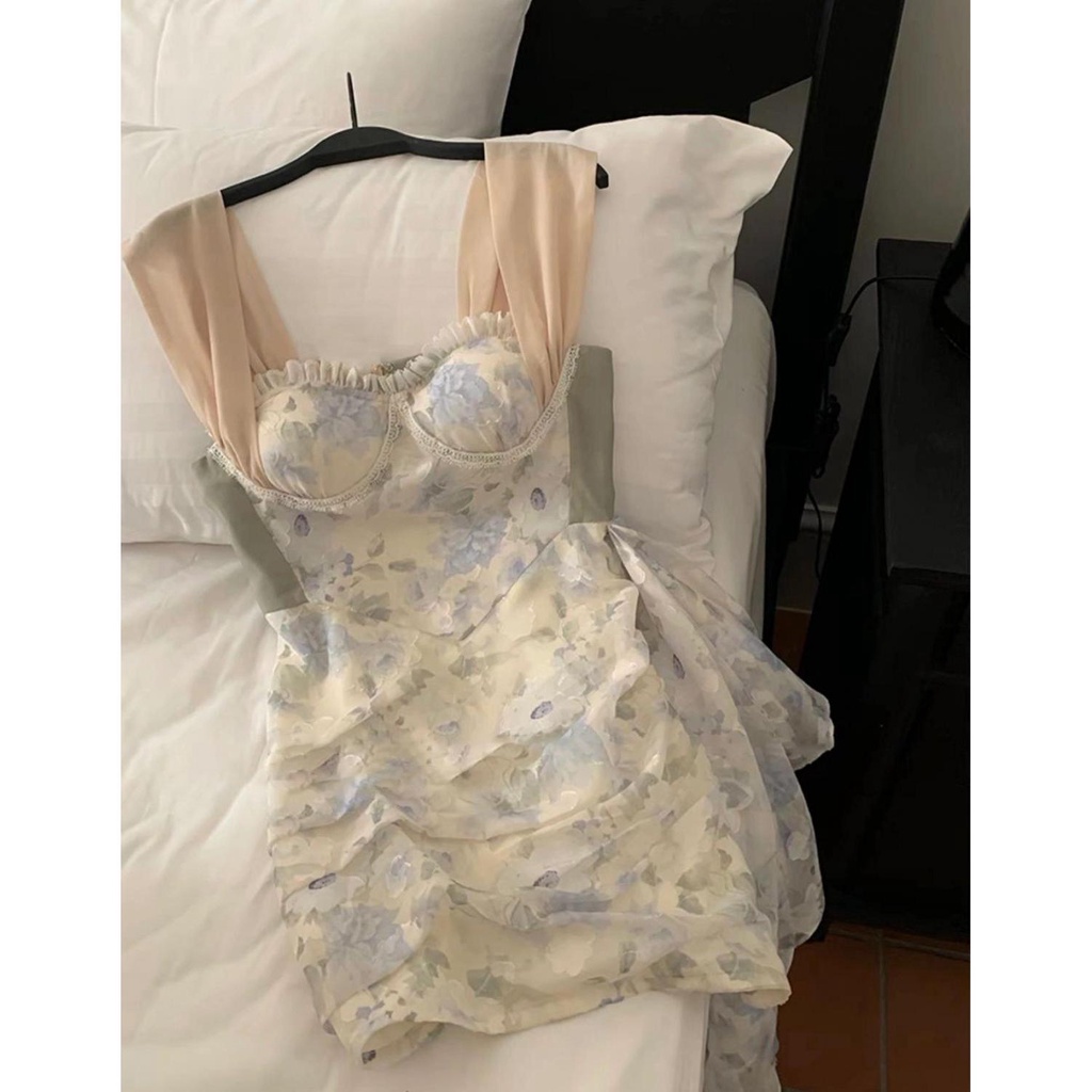 Gaun Selempang Bunga Perancis Wanita, Musim Panas2023Pria Kecil Gaya Barat Cantik Pinggang Ketat