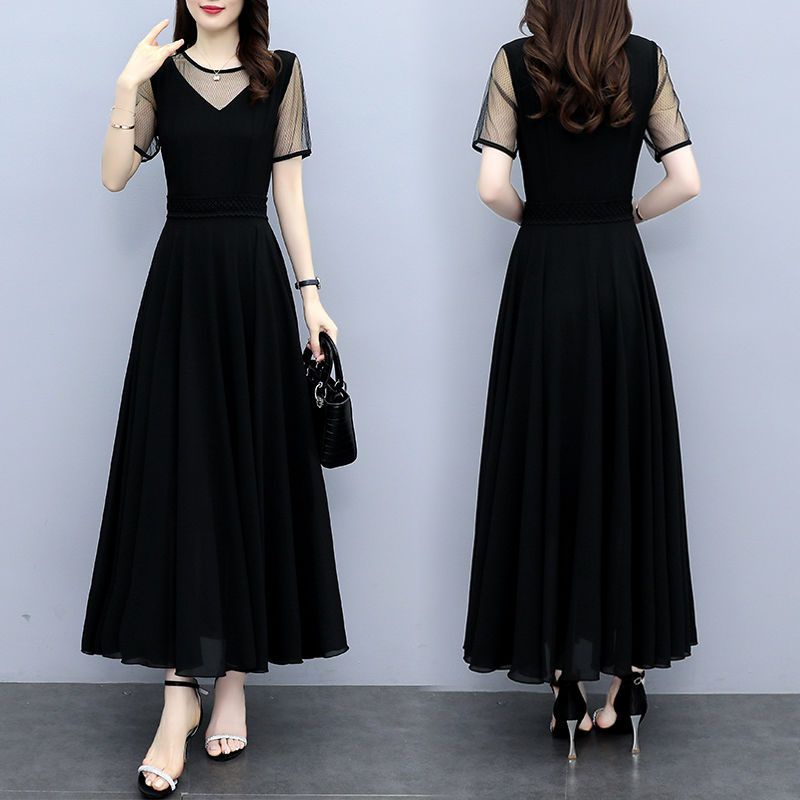 Detail Gaun Sifon Kelas Atas Wanita, Dress Panjang Musim Panas2023Gaun Potongan Pinggang Ketat Musim Panas,