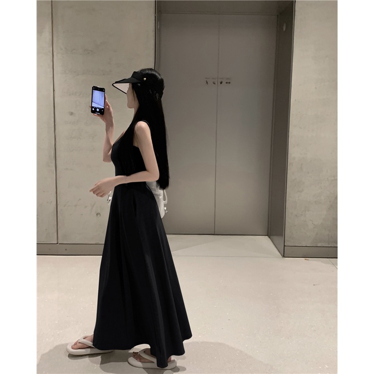 Pakaian Wanita > Atasan > Kaus > ✑Gaun suspender v-neck abu-abu wanita musim panas keinginan murni rok angin perasaan dingin backless temperamen high-end rok panjang