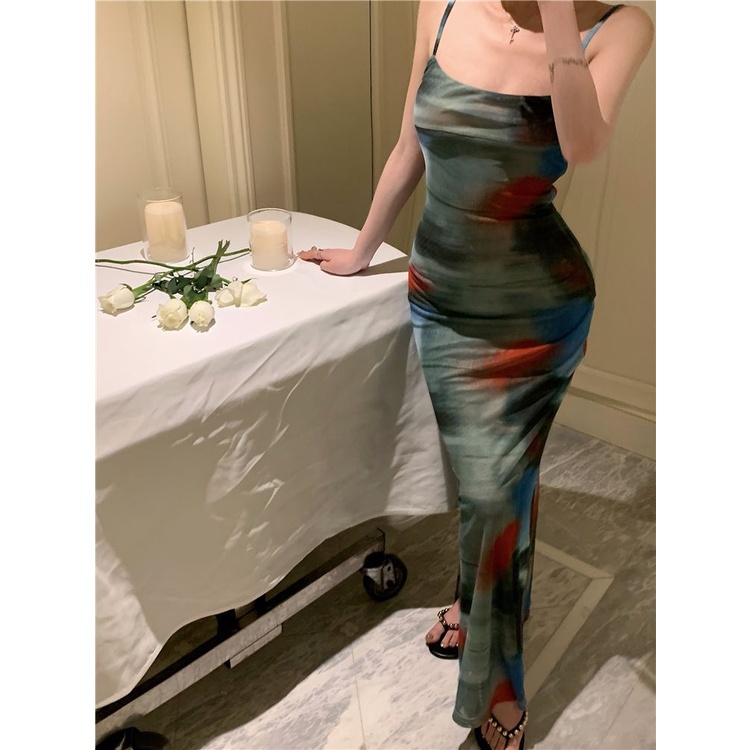 Detail Gaun Tali Gaya Keinginan Murni Gaun Panjang Musim Panas Wanita Rok Pinggul Seksi Kontrol Pinggang Re