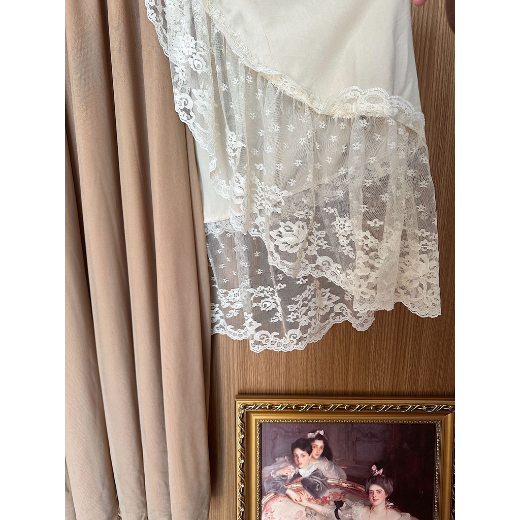 Detail Gaun tidur vintage Prancis yang dapat dikenakan di rumah yang dapat dikenakan di rumah dengan gaya p